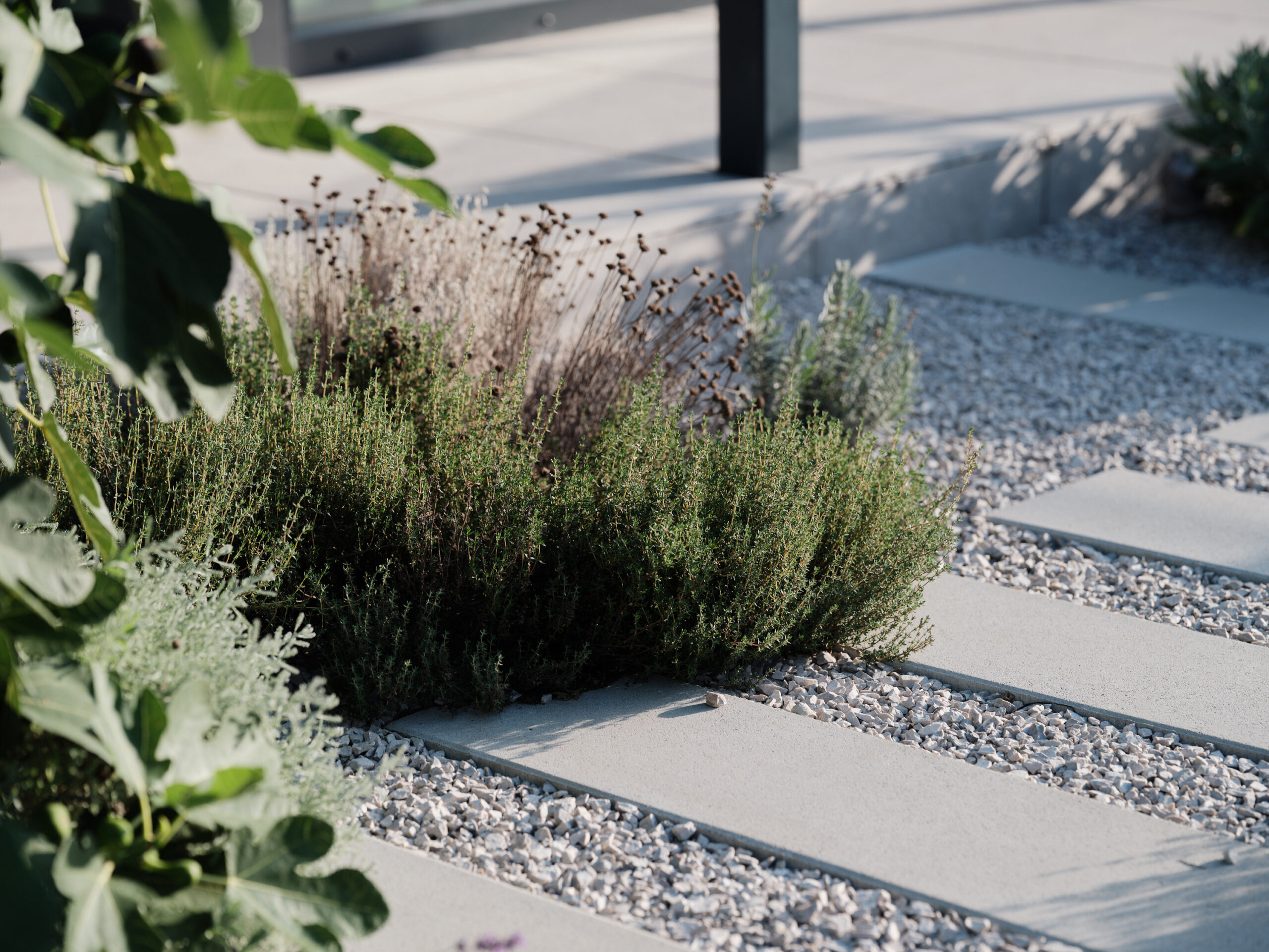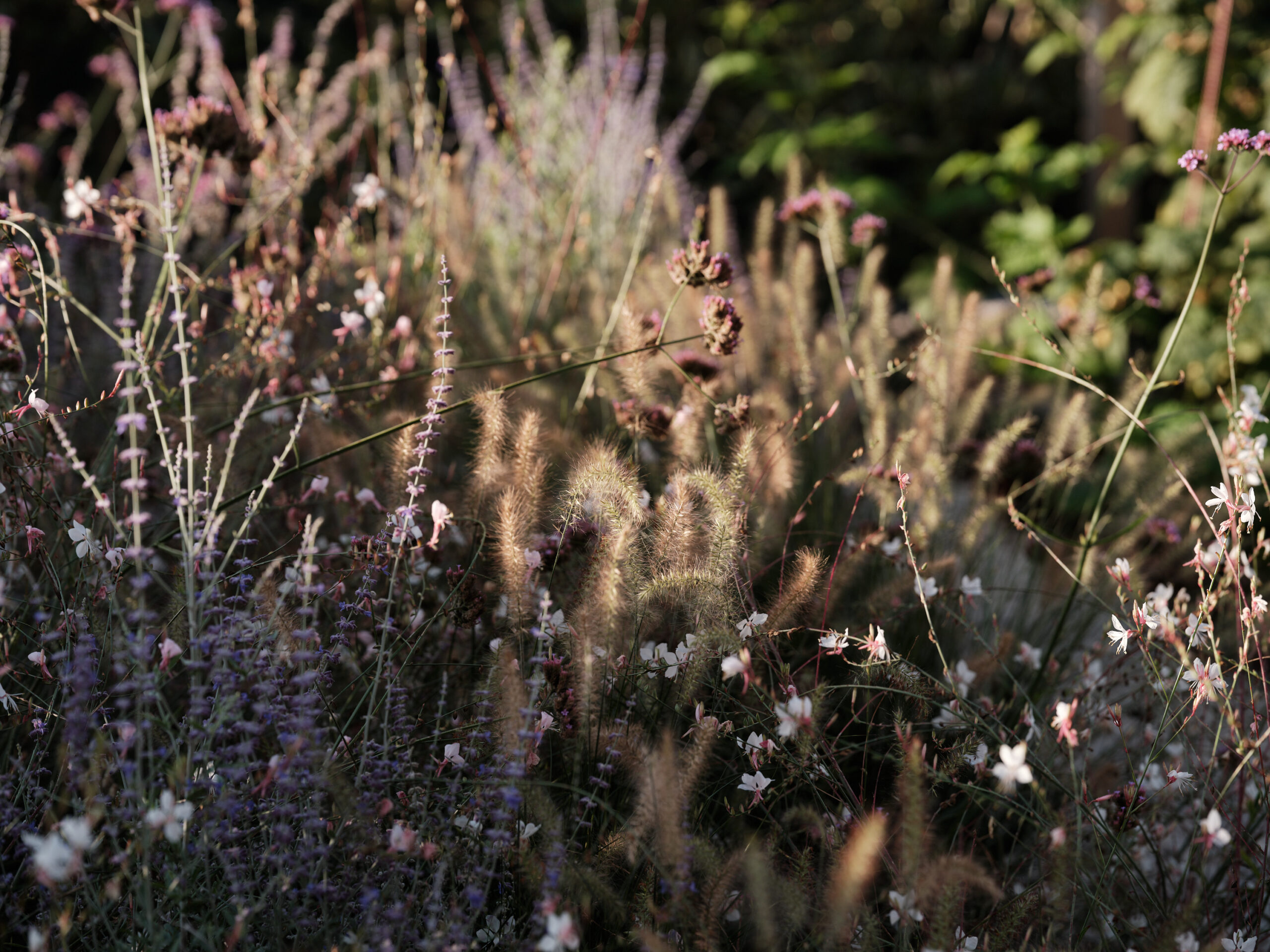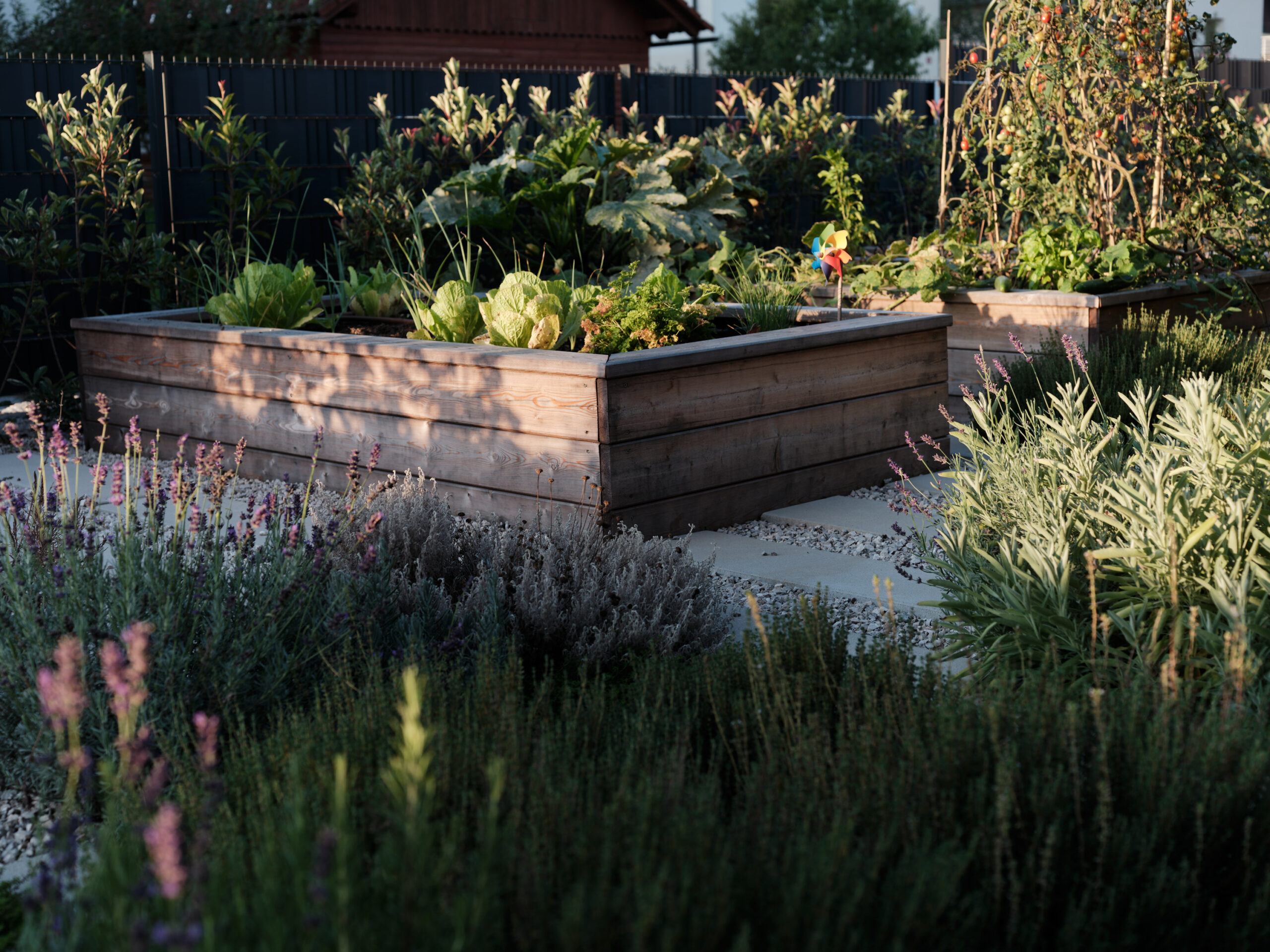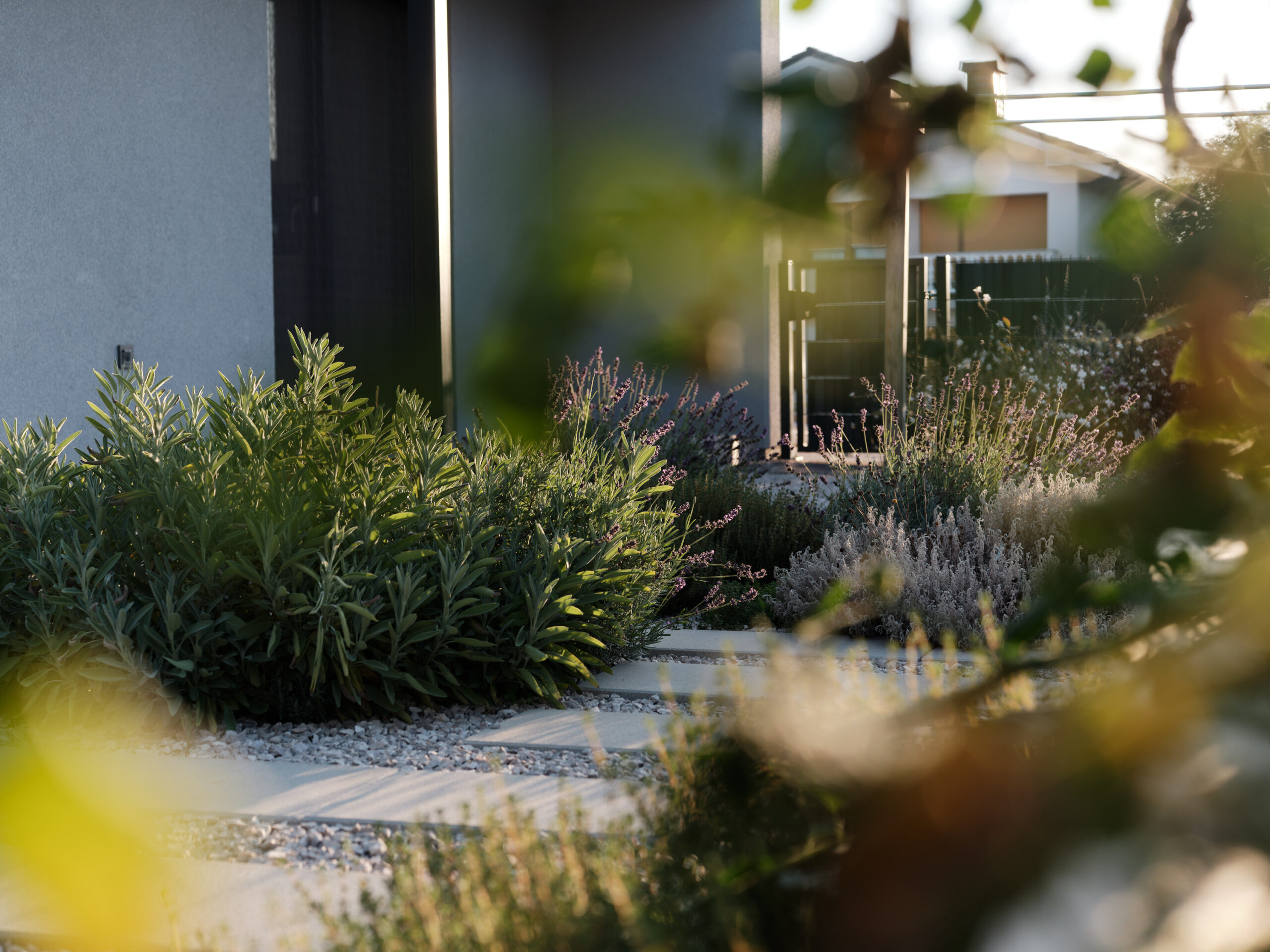 Izbrane rastline tvorijo zanimivo podobo skozi celo leto. Preprost vrt, ki ponuja vse za udobno in doživeto bivanje.